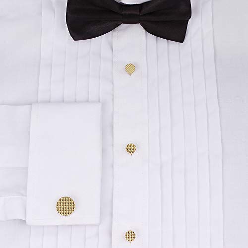 • DESIGN- Sleek, exquisite texture make this round cufflinks and stud set unique, silver tone cufflinks set is suitable for all kinds of outfits. Gold cufflinks and studs look out-standing on your white tuxedo dress shirt.