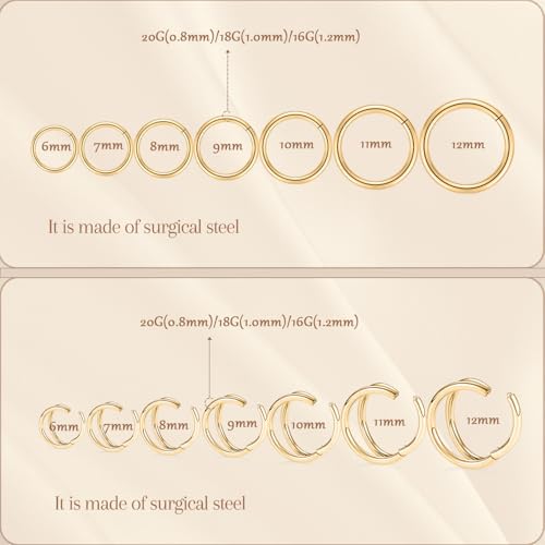 • Color and Size:2 Pcs nose hoop,gold,available 20G and in 6mm inner diameter.Please double check the measurements prior to purchasing