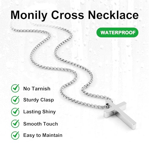 Monily Birthday Gifts for Dad Cross Necklace for Men Silver/Gold Stainless Steel Cross Chain Pendant Necklace for Mens Father's day gifts 3