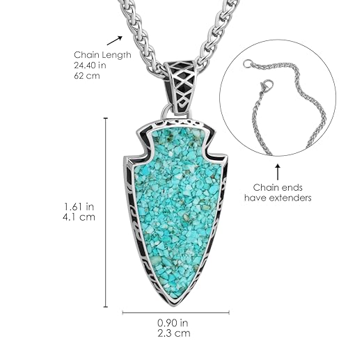 Arrowhead Necklace for Men, Stainless Steel Handmade Pendant with Natural Turquoise or Snowflake Chips, Father's Day Gift for Dad, Gifts with Box for Men Boyfriend Husband, Nature Lover 1