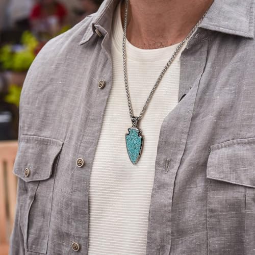 HOT ! Arrowhead Necklace for Men, Stainless Steel Handmade Pendant with Natural Turquoise or Snowflake Chips, Father's Day Gift for Dad, Gifts with Box for Men Boyfriend Husband, Nature Lover