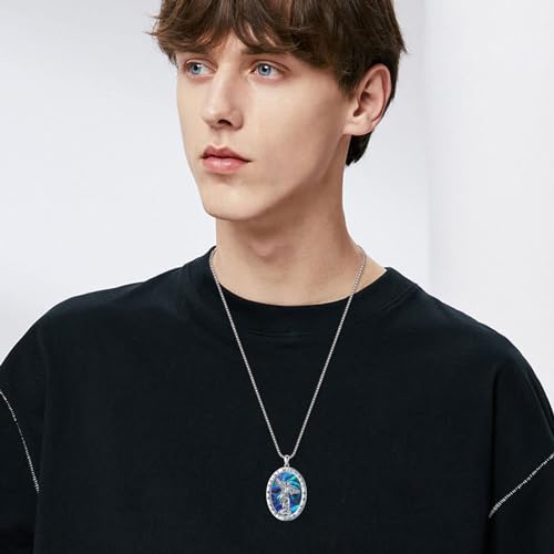HOT ! Sterling Silver Patron Saint Necklace for Men and Women, St Michael St Christopher St Benedict Jesus Cross Archangel Pendant Catholic Medals Amulet