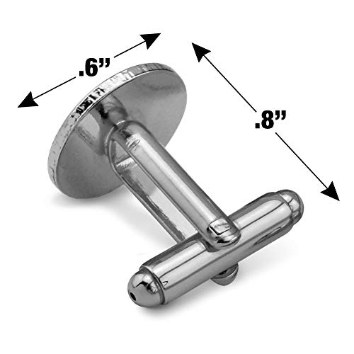 • CLASSIC & ELEGANT: Delight the dapper dresser in your life with this unique novelty cufflink set. Boasting a polished silver-tone finish, glossy resin-topped graphic, and easy-to-use bullet back closure, these round cuff links are the perfect way to add some flair to your daily wear.