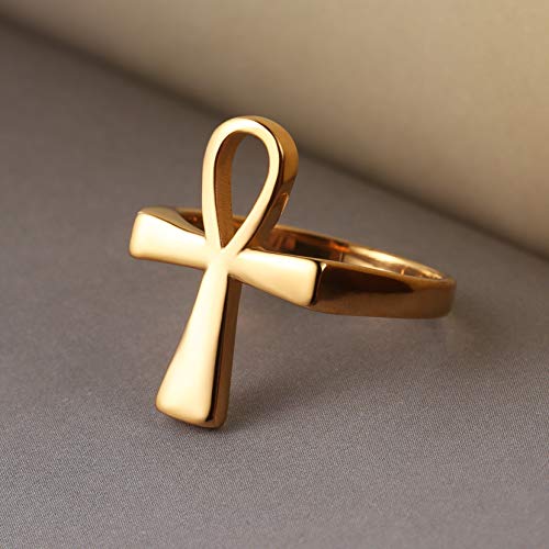 HZMAN Stainless Steel Polished Fashion Egyptian Jewelry Ankh Cross Ring for Men Women with Gift Bag 6