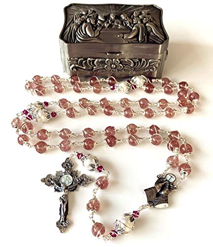 More information about elegantmedical HANDMADE UNDOUBTED STRAWBERRY BEADS & REAL AAA10MM PEARL STERLING 925 SILVER ROSARY NECKLACE CRUCIFX & BOX CATHOLIC GIFTS