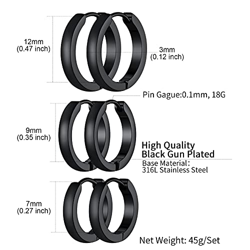 • 3 Pairs Earrings Set: come with 3 pair hoop earrings with different size 8mm 10mm 12mm, meet your different needs, perfect for Both Men and Women.