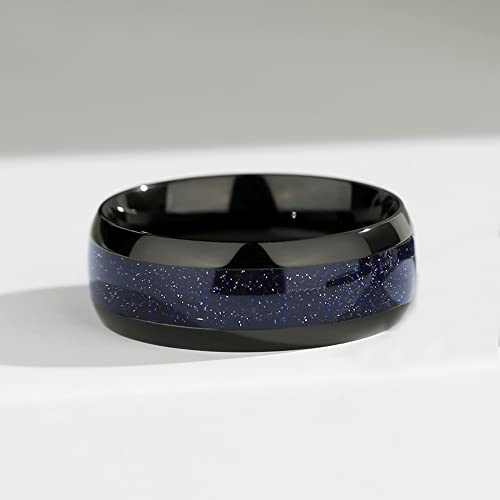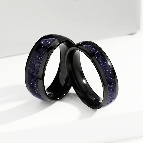 Personalized Promise Rings for Women/Men, Custom Promise Rings for Her, Promise Rings for Couples, Matching Couple Rings for Him and Her, Blue Sandstone Filled Wedding Engagement Ring 8mm/6mm Bands 6