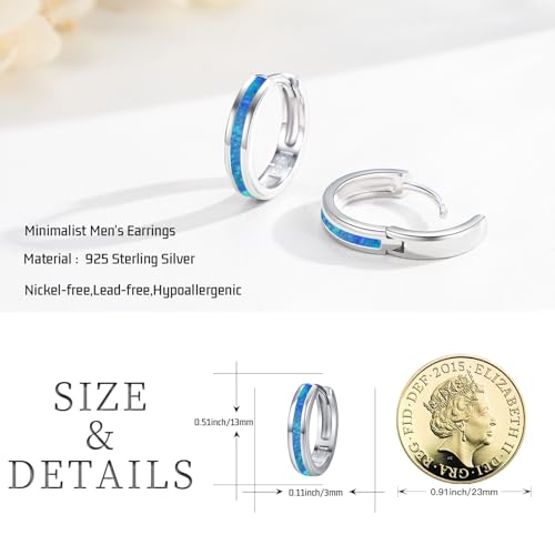Huggie Earrings for Men Women 925 Sterling Silver Blue Opal Small Mens Hoop Earrings Fashion Jewelry Gifts for Birthday Anniversary Graduation 6
