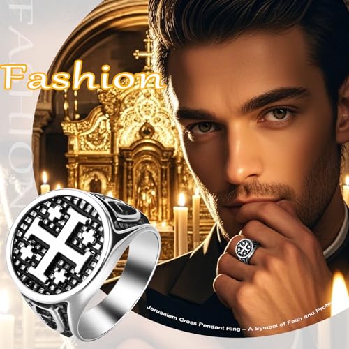 HOT ! Vintage Crusader Jerusalem Cross Ring: Mens Stainless Steel Christians Statement Jewelry Gifts for Easter Christmas Birthday