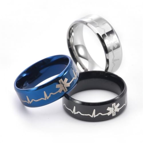 ZKXXJ Personalized Medical ID Ring for Men Teen,Custom Name ICE Engraved Medical Alert Rings Finger Band Stainless Steel Medical Jewelry with Medic Wallet Insert Card 5