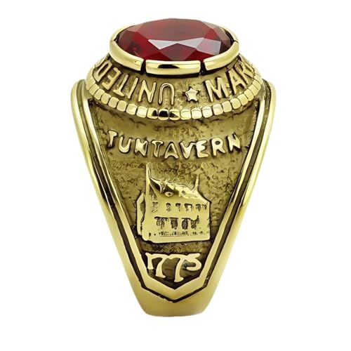 US Marines Military Ring, Gold-Tone with Red Crystal Stone, Vintage Style Lunxury Engraved Stainless Steel Mens Ring 5