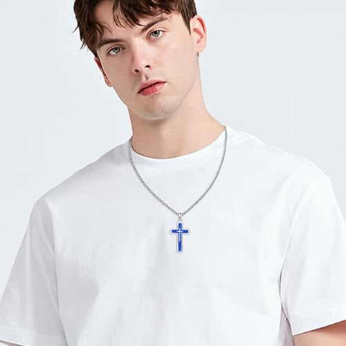 • 【Religious Necklace Size】The size of the lapis lazuli cross pendant for men is 1.38 inch × 0.87 inch/35 mm × 22 mm; prime cross necklace day Featuring an adjustable stainless steel rolo chain, it measures 22 + 2 inches in length and closes with a lobster clasp