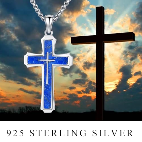 • 【Christian Necklace Material】Cross necklace for men made of lapis lazuli and 925 sterling silver; Hypoallergenic, nickel free, lead free, cadmium free; Suitable for sensitive skin
