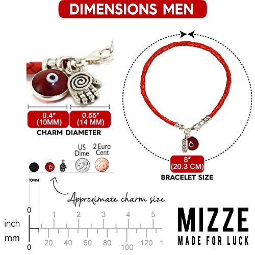 • ⚜️ 【8" RED BRACELET FOR EVIL EYE PROTECTION - OJO BRACELET】 - Beautiful spiral Hamsa bracelet charm is on an 8" length leather braided bracelet. Lobster clasp and 10 MM red transparent Evil Eye charm are both 925 Sterling Silver. The glass Evil Eye protection charm is Turkish in origin and is believed to protect from the envious gaze of others. [ A 7" Size bracelet is available - Search for ASIN B003RNNBXK ].