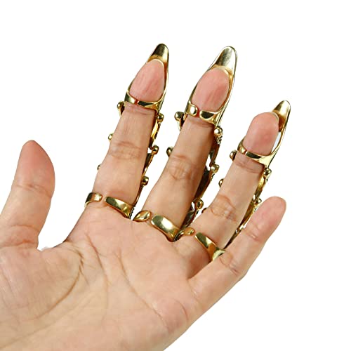 5Pcs Resizable Full Finger Ring Claws Armor Gold Knuckle Metal Amour Finger Claws Rings Adjustable Size Cosplay Halloween Costume Jewelry Gifts Decoration 6