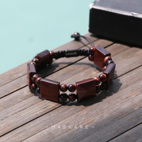 HOT ! HASKARE Mens Beads Tigers Eye Bracelet, Protection Crystals Natural Red Tiger Eye Unique Handcrafted Bead Bracelet for Men, Healing Stone Energy Men Jewelry Christmas Gifts for Him