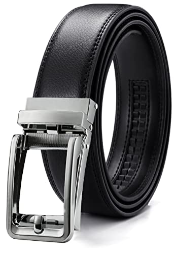 • EASY RATCHETING BELT BUCKLE - Just slide the leather dress belt in the ratchet buckle and the ratchet belt auto-locks. Lift the automatic buckle up or push the ratchet lever to release. Simple, smooth and sleek!