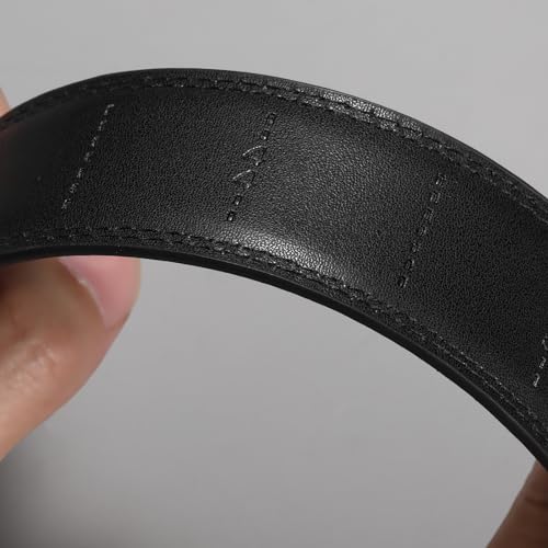 • Easy to Use - Enjoy the seamless simplicity and smoothness of our ratchet belt design. Simply Slide the black belt into the sliding buckle, pull the black leather belt through, then click-it buckle automatically locks in place. To release the casual belt, gently push the lever on the side of the automatic buckle, then the lock snaps shut. Simple, smooth, and sleek!
