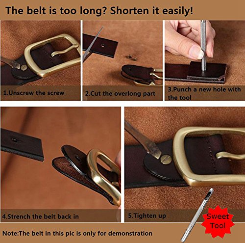 Mens Retro Leather Dress Belt Washed Top Grain Genuine Leather Belt with Brass Buckle 5