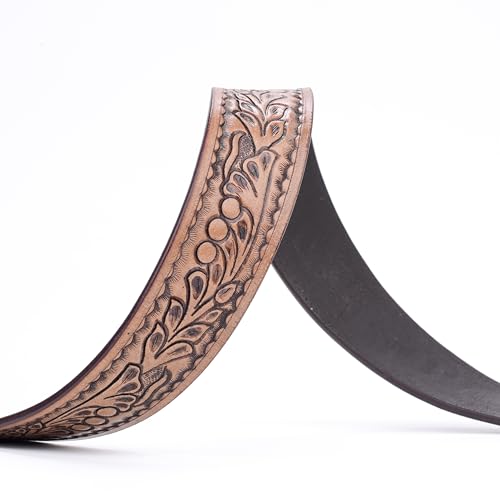 RESISTANCE Heavy-Duty Strap Genuine Full Grain Western Floral Tooled Leather Belt Strap 1-1/2"(38mm) Wide With Free Buckle 7