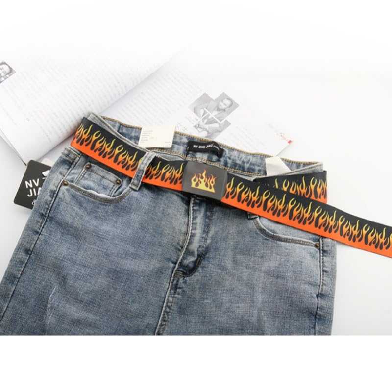 HOT ! Trendy Flame Print Canvas Belt Hip Hop Automatic Buckle Waistband Practical Tactically Nylon Belts For Men And Women