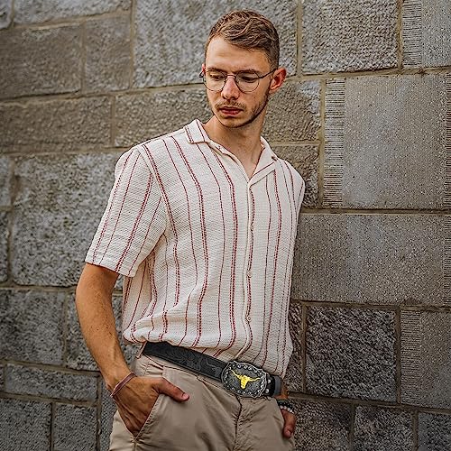 • [High-Quality Black Leather] These western cowboy belts are crafted from high-quality black leather, ensuring durability and a luxurious feel. The rich texture and smooth surface add a touch of sophistication to any outfit. Genuine leather ensures both style and comfort, making it perfect for all-day wear.