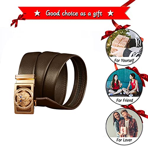 HOT ! Men's Western Cowboy Belt - Howling Wolf Head Square Ratchet Buckle With Easy Slide Adjustment
