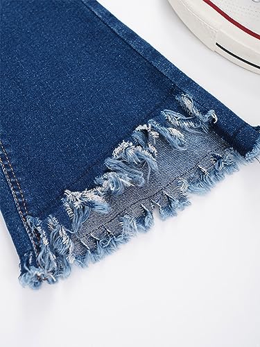 JEATHA Kids Girls Flare Jeans Ripped Denim Pants Frayed Burr Bell-Bottom Trousers Casual Streetwear 7