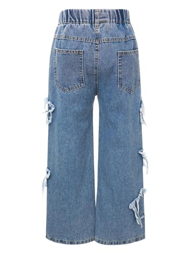 Girls Jeans School Girls Casual Elastic Waist Ripped Wide Leg Pants Kids Jeans Denim Trousers 5-16 Years 6