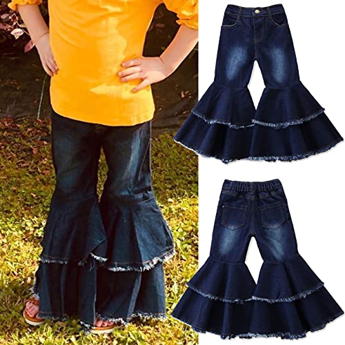 • ❤ Size: Kids Baby Clothing Toddler Children Girl Clothes Bell Bottom Flare Denim Jeans Pants Tie Dye Ruffles Layered Leggings Trousers, Suit for 2-3 Years / 3-4 Years / 4-5 Years / 5-6 Years / 6-7 Years Little Girls.