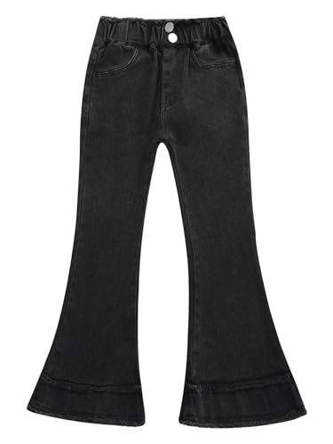 TiaoBug Kids Girls Flared Leg Jeans Raw Hem Elastic Waist Denim Trousers Denim Bell Bottom Pants Casual Jeggings 6