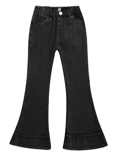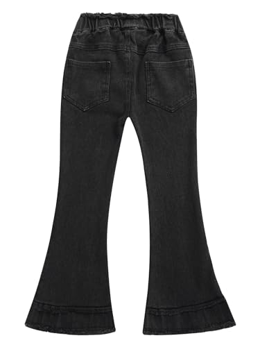 Aislor Kids Girls Raw Hem Bell Bottom Jeans Elastic Waist Flared Denim Pants Vintage Denim Trousers with Pockets 6