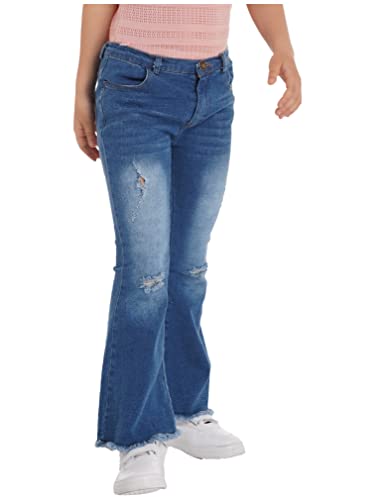easyforever Kids Cowgirl Stretchy Ripped Ruffle Flare Jeans Girls Leggings Bell Bottom Jeans Denim Pants Trousers 7