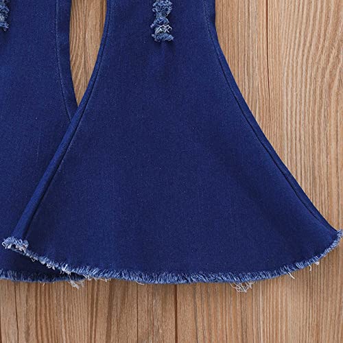 HOT ! Toddler Girls Ripped Flared Jeans Kids Casual Elastic Waist Frayed Hem Pants Bell Bottom Pants (Blue, 18-24 Months)