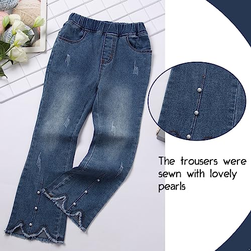 Kids Girls Distressed Flare Jeans High Waist Irregular Raw Hem Bell Bottom Denim Pants Casual Stretchy Jeans Legging 6