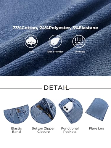 • VERSATILE FIT: Wash denim Flare pants offers timeless appeal, perfect for casual or dressy occasions with a figure-enhancing leg