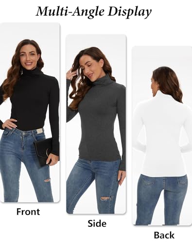 4 Pack Women’s Thermal Turtleneck Shirts, Women Turtle Neck Fleece Lined Compression Long Sleeve Base Layer Tops 3