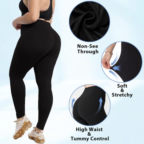 MOREFEEL Plus Size Leggings for Women-Stretchy X-Large-4X Tummy Control High Waist Spandex Workout Black Yoga Pants 4