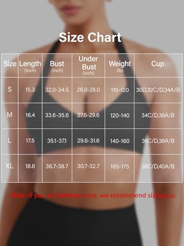 • The halter bra fit true to size. We recommend to size up for more comfy fit for large chest