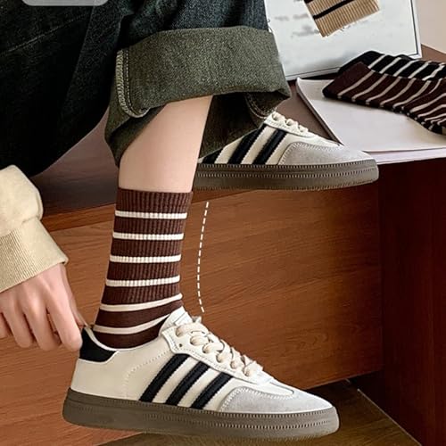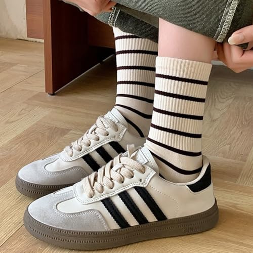 CHUNFO Womens Striped Socks Crew,Casual Classic,Sweat-absorption Soft,Athlete Travel,Sneaker Sock Size5-8 5