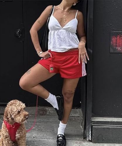 More information about Women Athletic Sweat Shorts Side-Striped Y2k Summer Elastic Waist Workout Loose Wide Leg Lounge Shorts with Pockets