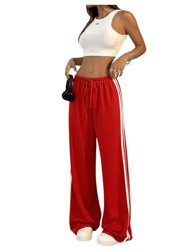 • Features: low rise sweatpants, striped trim, drawstring waist, wide leg, loose fit, casual pants