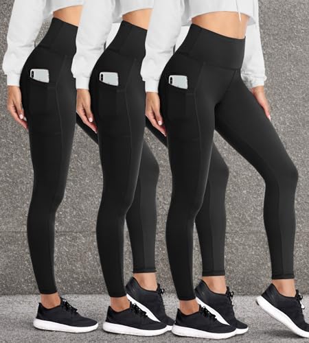 HOT ! HIGHDAYS 3 Pack Fleece Lined Leggings for Women with Pockets - Tummy Control Thermal Warm Yoga Pants Plus Size S/M-4XL, Black/Black/Black, Extra Plus Size