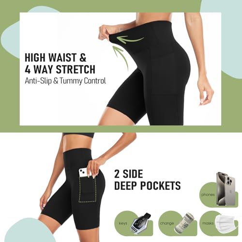 GROTEEN 8'' Biker Shorts Women with Pockets - High Waisted Tummy Control Yoga Workout Running Gym Spandex Shorts 6