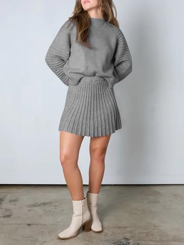 • Featuer: 2 piece outfits for women, knit sweater, pullover sweater top with mini dress, long puff sleeve, lanter sleeve, mini skirt, knit pullover tops, mock neck sweaters, relaxed fit, two piece dresses set for women, thick and not see-through.