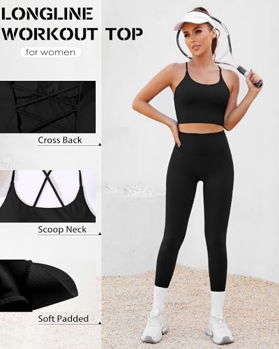 DaiLiWei Strappy Sports Bras for Women High Support Longline Open Back Workout Tops Padded Cross Yoga Crop Tank Built in Bra 2