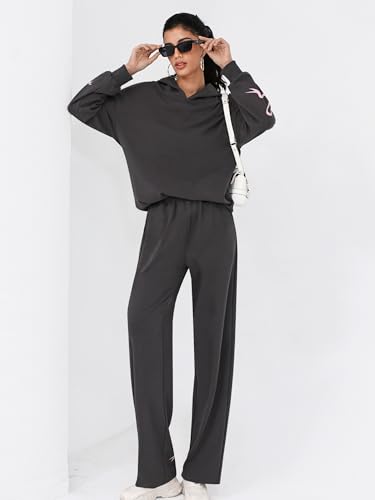 HOT ! ETCYY NEW Womens 2 Piece Lounge Sets Bow Trim Print Hoodie Set Fall Fashion Oversized Sweatshirts Wide Leg Sweatpants
