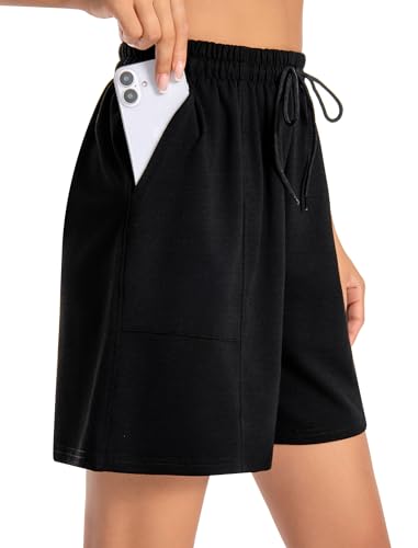 Women's Lounge Athletic Shorts with Pockets, 6.1" Sweat Shorts Women, Summer Casual Elastic Walking Running Shorts 6