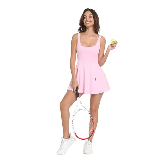 Womens Tennis Dress Built in Shorts & Bra Athletic Golf Active Workout Dress with Pockets 1