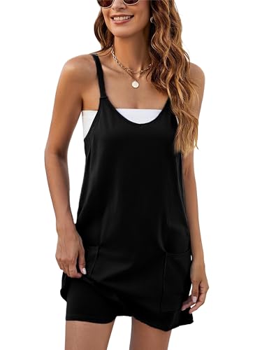 More information about Women Sleeveless Athletic Dress Mini Dress Spaghetti Strap Sundress with Shorts